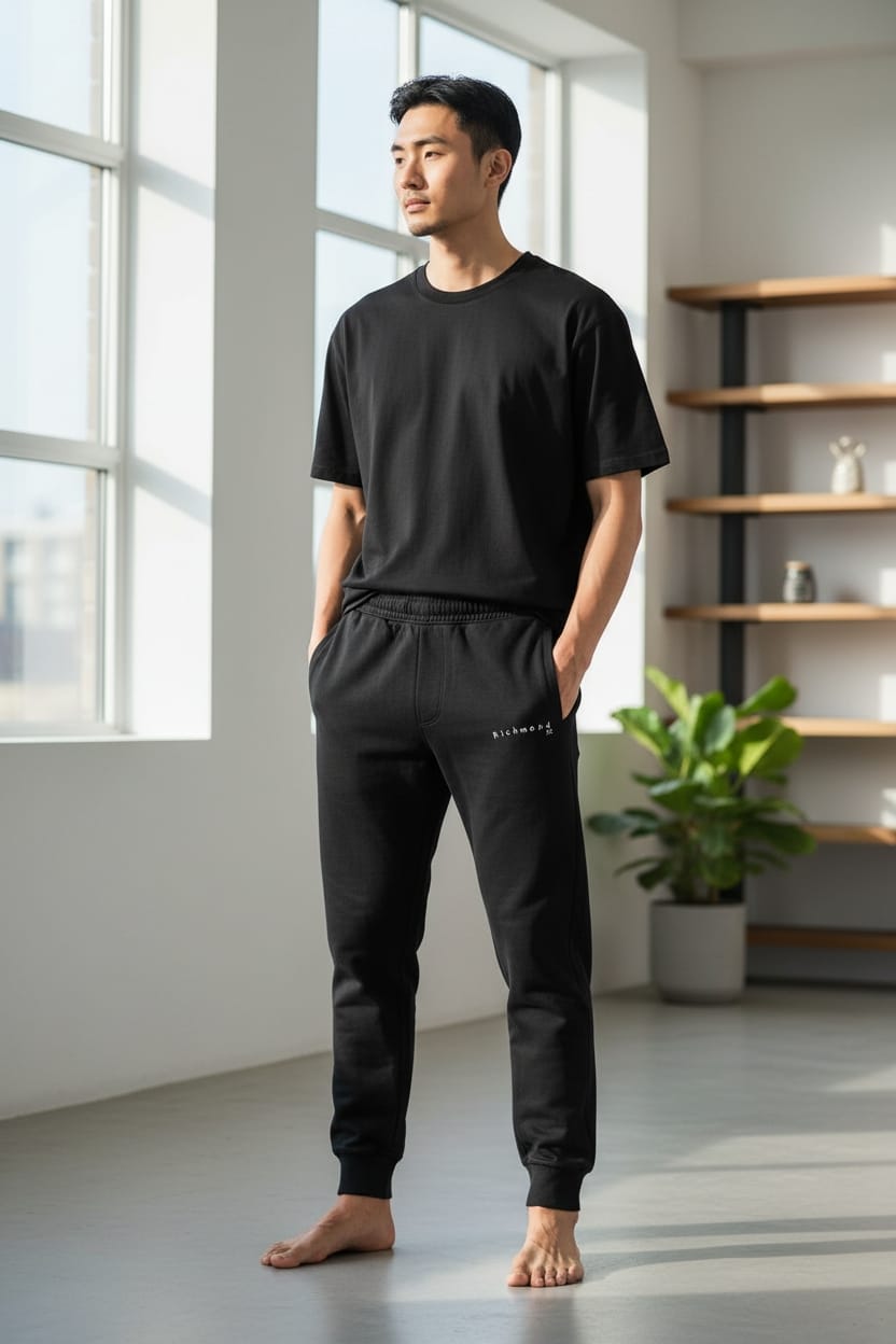 Pantaloni RICHMOND X in cotone nero dal taglio slim, con logo ricamato sulla gamba sinistra. Girovita elasticizzato con cordino per un comfort ottimale, tasche laterali pratiche e orli elasticizzati. Ideali per uno stile casual e moderno con il tocco distintivo del brand