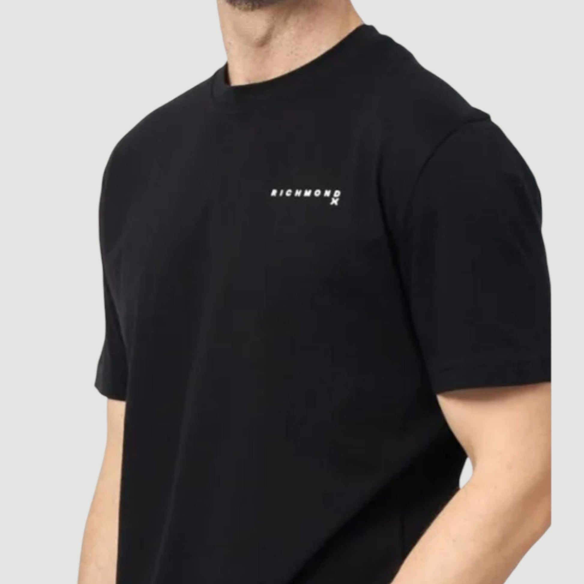 La t-shirt da uomo a girocollo regular fit con maniche corte e orlo dritto, realizzata in 100% cotone, un grande classico di John Richmond, è in assoluto il capo che non può mai mancare nell'armadio di ogni uomo. Decorata unicamente da lettering del brand con logo a contrasto di colore sulla parte della nostra maglia