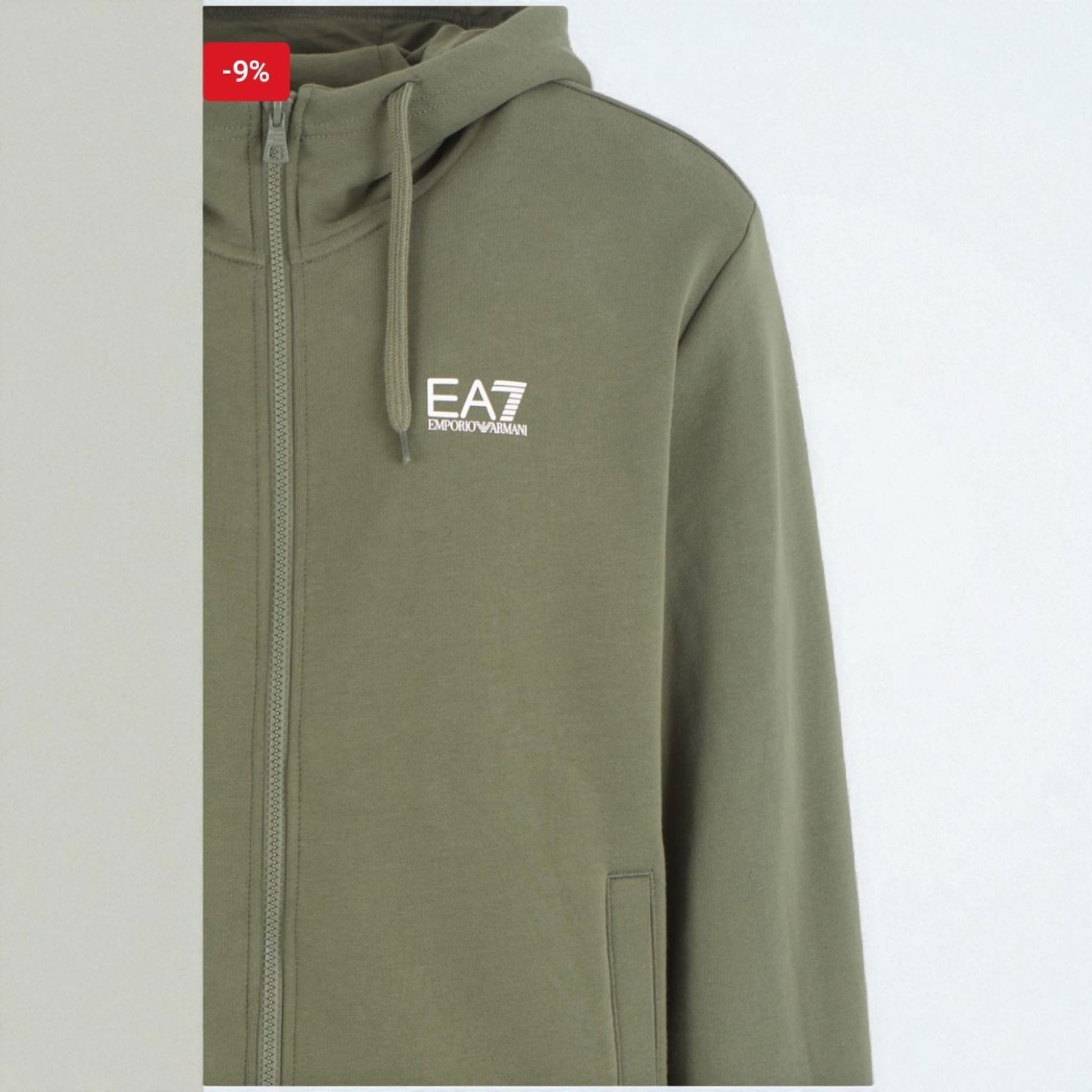 La tuta EA7 combina comodità e stile dinamico per assicurarti comfort durante lo sport e i momenti di relax. Il modello è realizzato in misto cotone ed è composto da felpa con cappuccio e zip e pantaloni jogger con coulisse in vita, tasche e fondo caviglia elasticizzato. Tessuto: 85% cotone, 15% poliestere; dettagli in maglia: 96% cotone, 4% elastan; fodera cappuccio: 100% cotone; tessuto pantaloni: 85% cotone, 15% poliestere; pantaloni dettagli: 96% cotone, 4% elastan Tuta composta da: Felpacon cappuccio, chiusura con zip, tasche laterali e logo EA7 a contrasto Pantaloni jogger con coulisse e tasche laterali